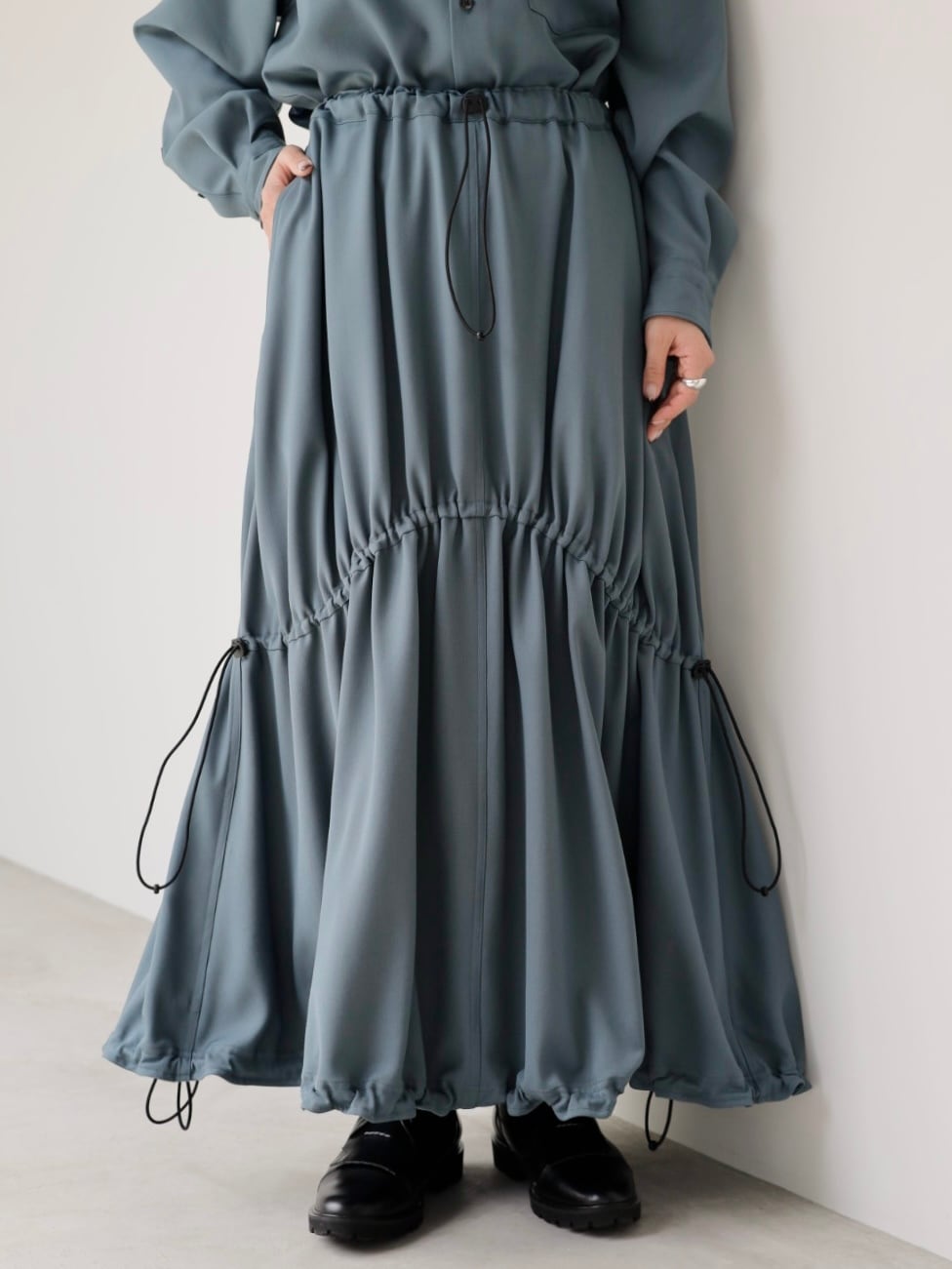 F: ウエスト70、ヒップ149.5、スカート丈(CB)90